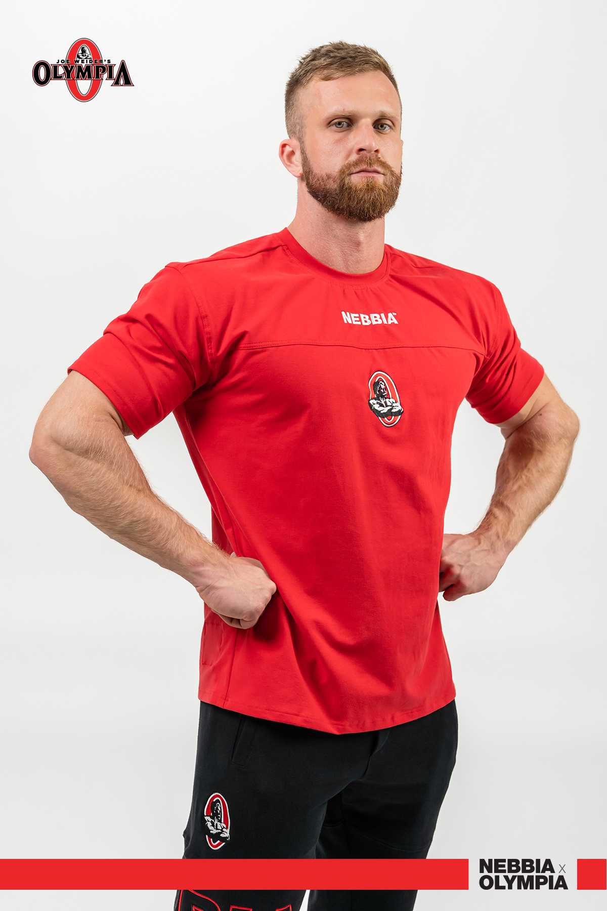 The stretch cotton T-shirt has the NEBBIA and Mr. Olympia logos embroidered on the chest. Additional stitching in the front will make your chest look bulkier. With a typical loose bodybuilding cut, it provides you with complete freedom of motion. It is breathable and lint-free. It retains its shape and colour even after dozens of washes.