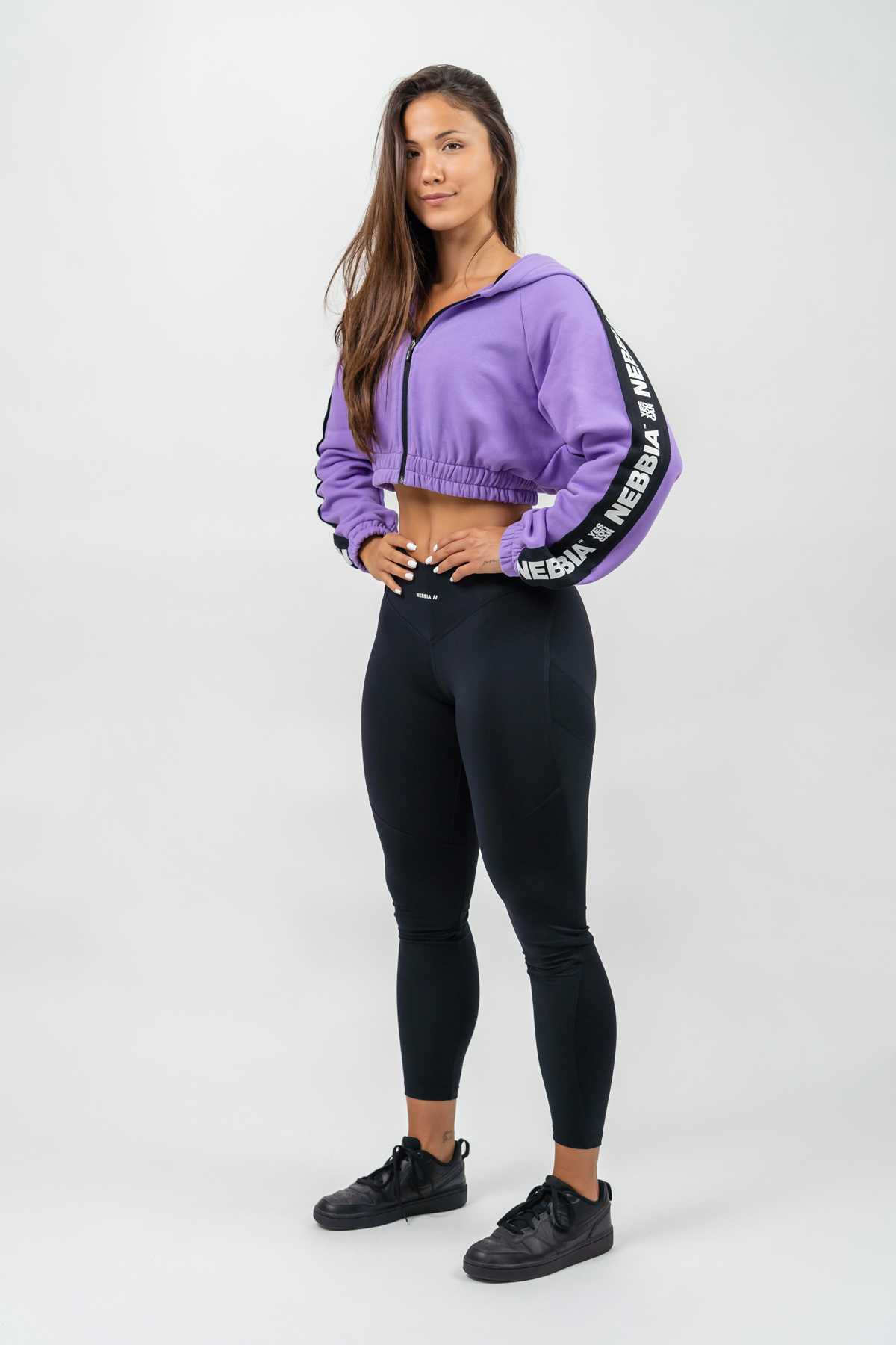 Women’s crop hoodie with iconic NEBBIA straps and a practical hoodie will not let you cool down too quickly after a hard training. It will keep you warm even on colder days.