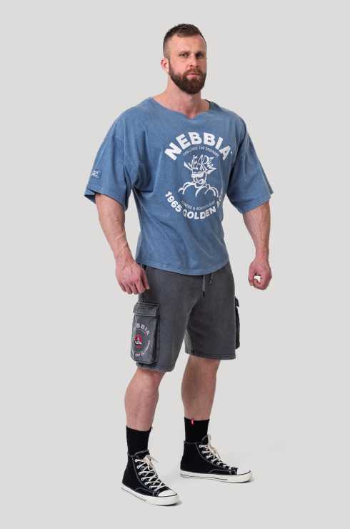 The loose fit gives you all the freedom you need to move, while the washed-off effect adds a tough, vintage vibe. Featuring functional cargo pockets, these shorts keep your essentials close, letting you focus on crushing your workout. The bold NEBBIA and Mr. Olympia branding on the pockets gives a powerful nod to bodybuilding’s greatest era.